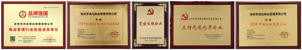 ? ? ? ?鴻運物業(yè)不僅得到住戶的肯定,更獲得當?shù)卣恼J可,先后榮獲以下稱號:寶安區(qū)物業(yè)管理先進單位、寶安區(qū)文明誠信企業(yè)、深圳市物業(yè)管理優(yōu)秀項目、節(jié)水先進單位、寶安區(qū)黨建百強企業(yè)、支持黨建優(yōu)秀企業(yè)、物業(yè)管理服務行業(yè)優(yōu)選品牌、中國創(chuàng)新先鋒企業(yè)、中國(物業(yè)管理)行業(yè)十大創(chuàng)新品牌、品牌強國物業(yè)管理行業(yè)優(yōu)選成員單位、廣東省守合同重信用企業(yè)、抗擊新冠肺炎疫情先進單位……