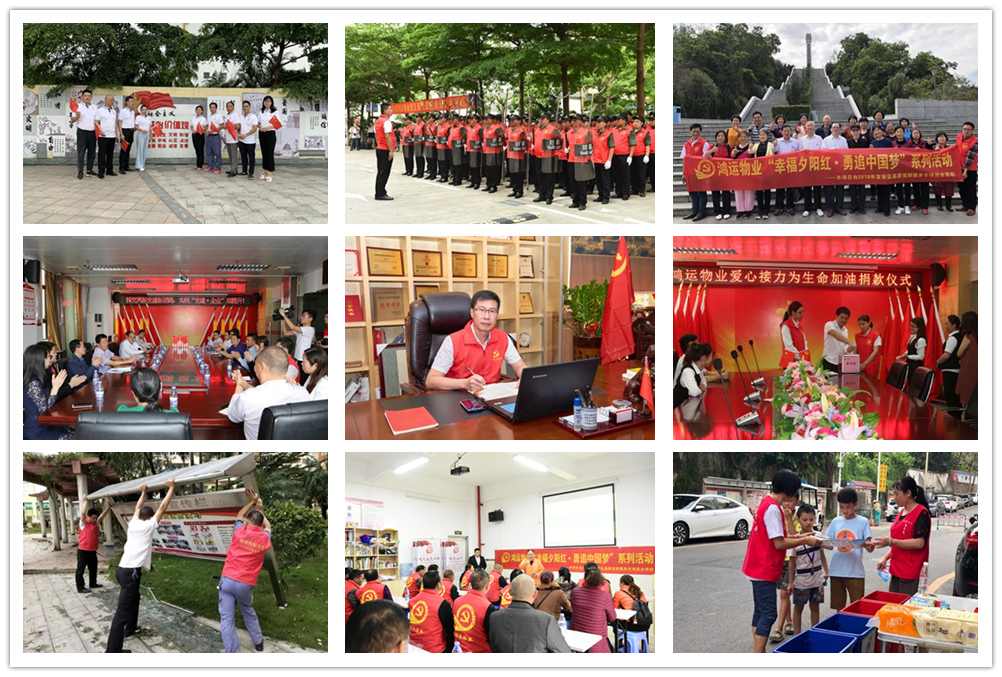 ?????? 黨建引領創(chuàng)新路,紅色物業(yè)樹標桿!鴻運物業(yè)堅持用黨建引領企業(yè)文化,將黨建融入物業(yè)管理。于2011年成立鴻運物業(yè)黨支部,專設黨員活動室;于2014年成立鴻運愛心互助基金會,資助困難員工;于2018年成立深圳市首家物業(yè)黨支部黨員應急救援隊,充分發(fā)揮黨員抗災救援的先鋒力量;于2019年成功開展“幸福夕陽紅·勇追中國夢”關愛深漂老人項目,營造尊老、敬老、助老的和諧社區(qū)氛圍。寶安日報以“打造紅色物業(yè),融入社區(qū)治理”“物業(yè)黨支部發(fā)揮大作用”等為題,對鴻運物業(yè)黨建工作進行多次報道。鴻運物業(yè)被授予深圳市寶安區(qū)黨建百強企業(yè)、支持黨建優(yōu)秀企業(yè)稱號。