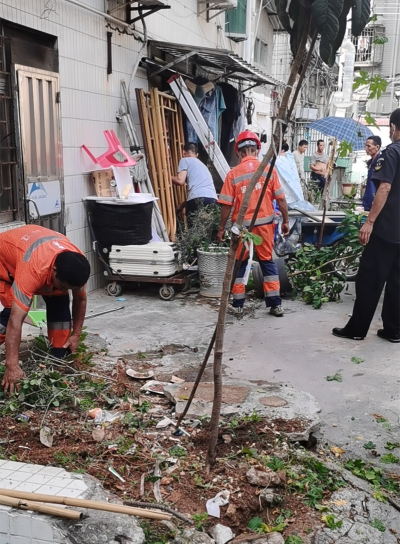 ? ? ? ?9月7日,鴻運(yùn)物業(yè)沙頭管理處聯(lián)合工作站、北控公司,對(duì)葉仔小區(qū)開展雜物清理專項(xiàng)工作,號(hào)召居民將堆放在公共區(qū)域的雜物移至住宅內(nèi),并對(duì)無人認(rèn)領(lǐng)的雜物、雜草等進(jìn)行統(tǒng)一清理,努力營造干凈整潔的生活環(huán)境。