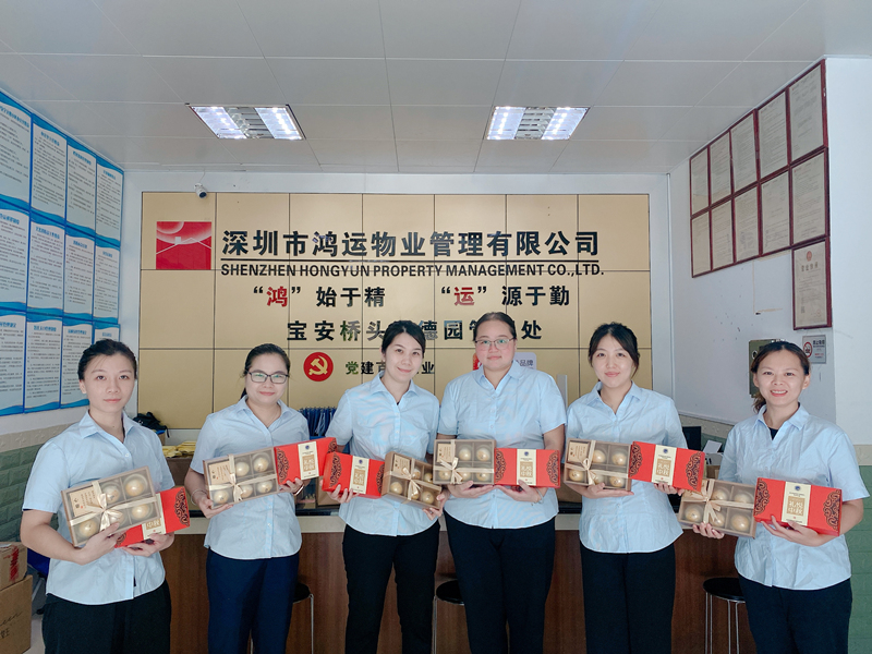 ? ? ? ?中秋節(jié)前夕,鴻運(yùn)物業(yè)向全體員工發(fā)放月餅禮盒,通過這圓圓月餅,向每一位員工送上最真誠的祝福,感謝大家的辛勤付出。鴻運(yùn)物業(yè)黨支部還舉辦了“黨群同慶·情滿中秋”主題黨群活動(dòng),和總公司員工一同包月餅、做花燈,祈愿萬家團(tuán)圓、歲物豐成。各管理處員工在小區(qū)布置燈籠、彩帶、橫幅,營造濃濃的節(jié)日氛圍。