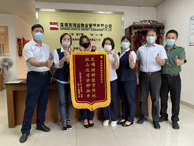 ? ? ? ?盛芳園“0312”疫情是對(duì)我們防疫工作的一場(chǎng)大考。在這場(chǎng)考試中,鴻運(yùn)物業(yè)盛芳園物業(yè)服務(wù)中心以“咬定青山不放松”的韌勁、“越是艱險(xiǎn)越向前”的拼勁,交出了滿意的答卷。盛芳園北區(qū)封控區(qū)的居民送來錦旗,用“危難時(shí)刻堅(jiān)守征地,阻擊疫情分秒必爭(zhēng)”來評(píng)價(jià)我們的疫情防控工作,讓我們的辛勤付出收獲更多的喜悅與欣慰。