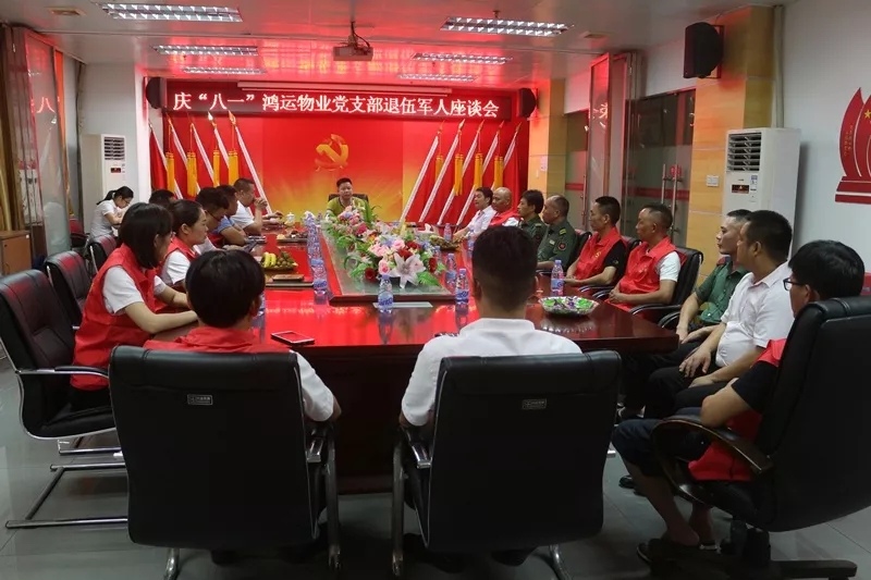 ?????? 8月1日下午,鴻運(yùn)物業(yè)黨支部退伍軍人座談會(huì)在總部召開,公司總經(jīng)理陳總、董事兼黨支部書記陳董、常務(wù)副總經(jīng)理麥總攜全體黨員參加了此次座談會(huì),彰顯公司高層和黨支部對(duì)建軍節(jié)的重視,對(duì)軍人的敬重,對(duì)退伍軍人的關(guān)愛。