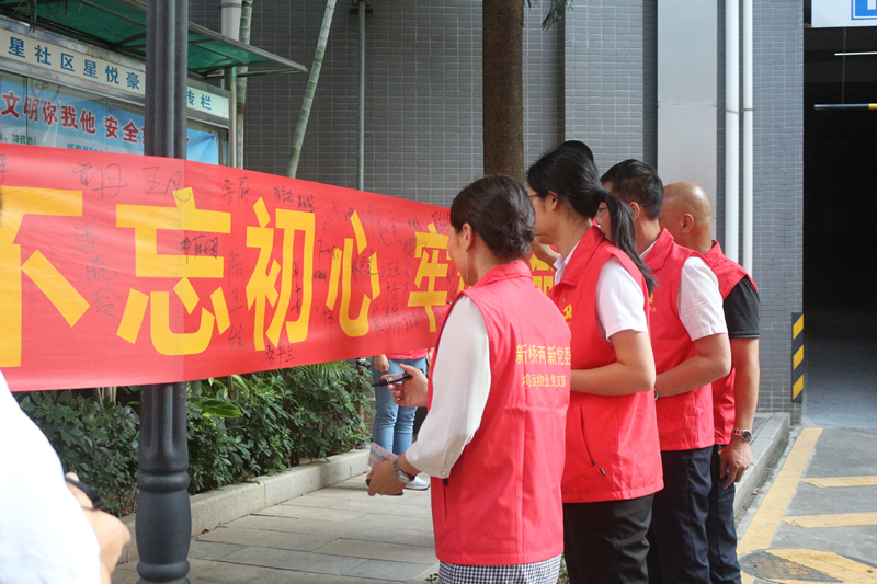 ?????? 隨后全體黨員帶著學(xué)習(xí)手冊(cè),來(lái)到星悅豪庭管理處,指導(dǎo)一線員工一同學(xué)習(xí),將“初心和使命”播撒到基層。并參加“不忘初心·牢記使命”簽名活動(dòng),表明鴻運(yùn)物業(yè)黨支部繼續(xù)帶動(dòng)公司員工深入學(xué)習(xí)的決心。