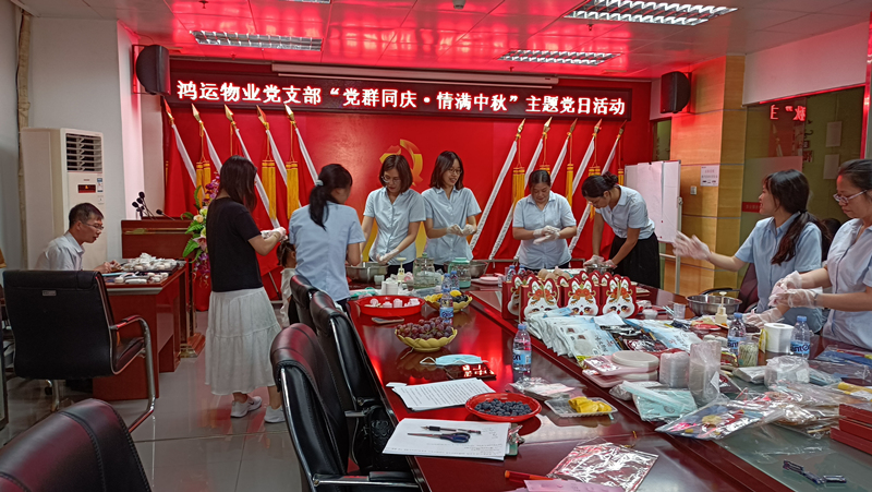 ? ? ? ?中秋節(jié)是我國(guó)四大傳統(tǒng)節(jié)日之一,以月之圓兆人之團(tuán)圓,祈盼豐收與幸福,寄托思鄉(xiāng)之情,是我國(guó)彌足珍貴的文化遺產(chǎn)。為弘揚(yáng)傳統(tǒng)文化,增強(qiáng)支部與群眾的聯(lián)系,9月18日下午,鴻運(yùn)物業(yè)黨支部在新橋“兩新”組織黨委的大力支持下,舉辦“黨群同慶·情滿中秋”主題黨日活動(dòng),與公司員工們一同包冰皮月餅、制作花燈,新橋“兩新”組織黨委曾禮祥主任、陸發(fā)明同志蒞臨現(xiàn)場(chǎng)與我們一同慶祝中秋佳節(jié)。